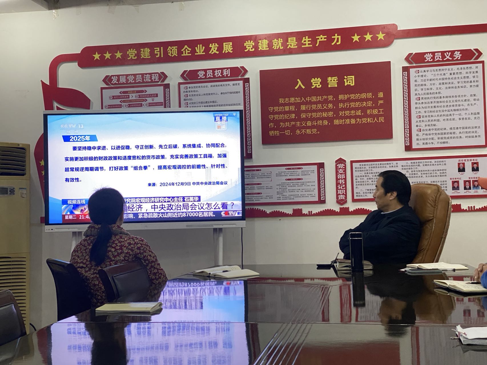 2024年12月23日公司党支部组织全体党员、全体员工学习观看了中央经济工作会议及精神解读。